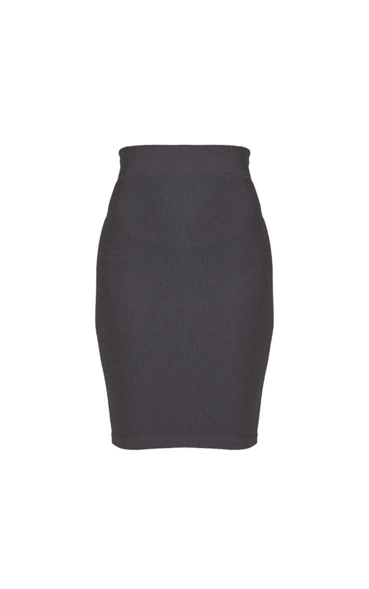 This midi skirt is sure to be a staple piece in your off-duty wardrobe. Featuring a black structured rib material with a flattering figure-hugging fit. Style with a cropped Sweatshirt and kicks to complete the look.