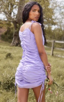 Ink Blue Slinky Bardot Tie Detail Flared Sleeve Bodycon Dress
