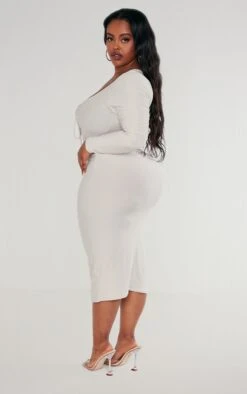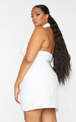 Plus Emerald Green One Shoulder Corset Ruched Satin Midi Dress