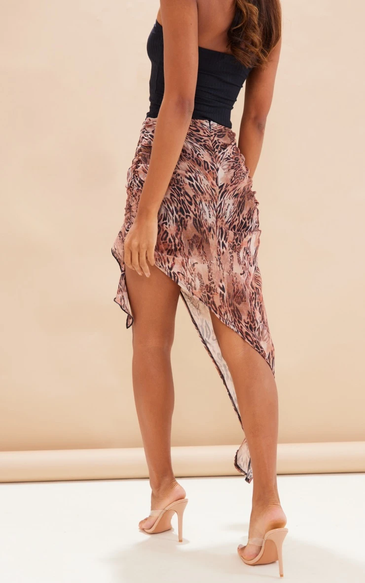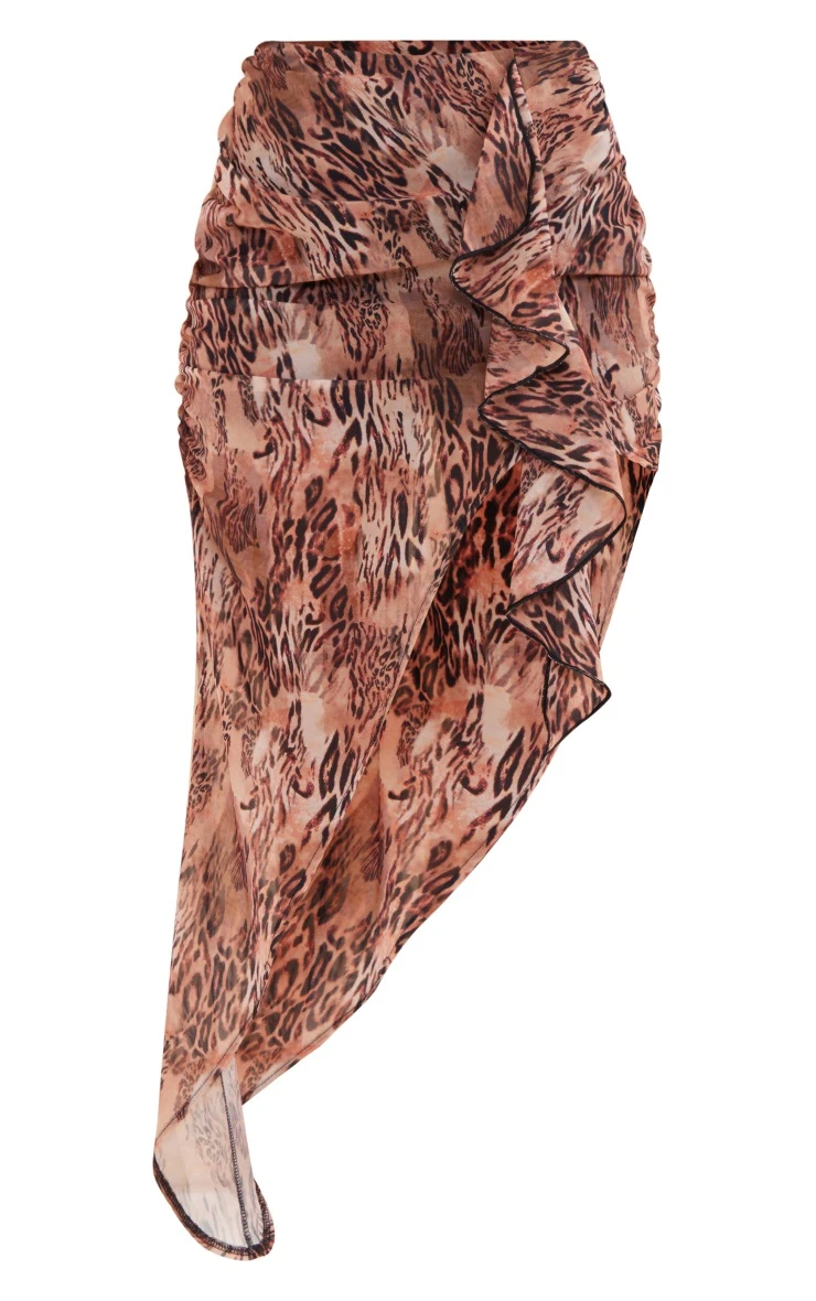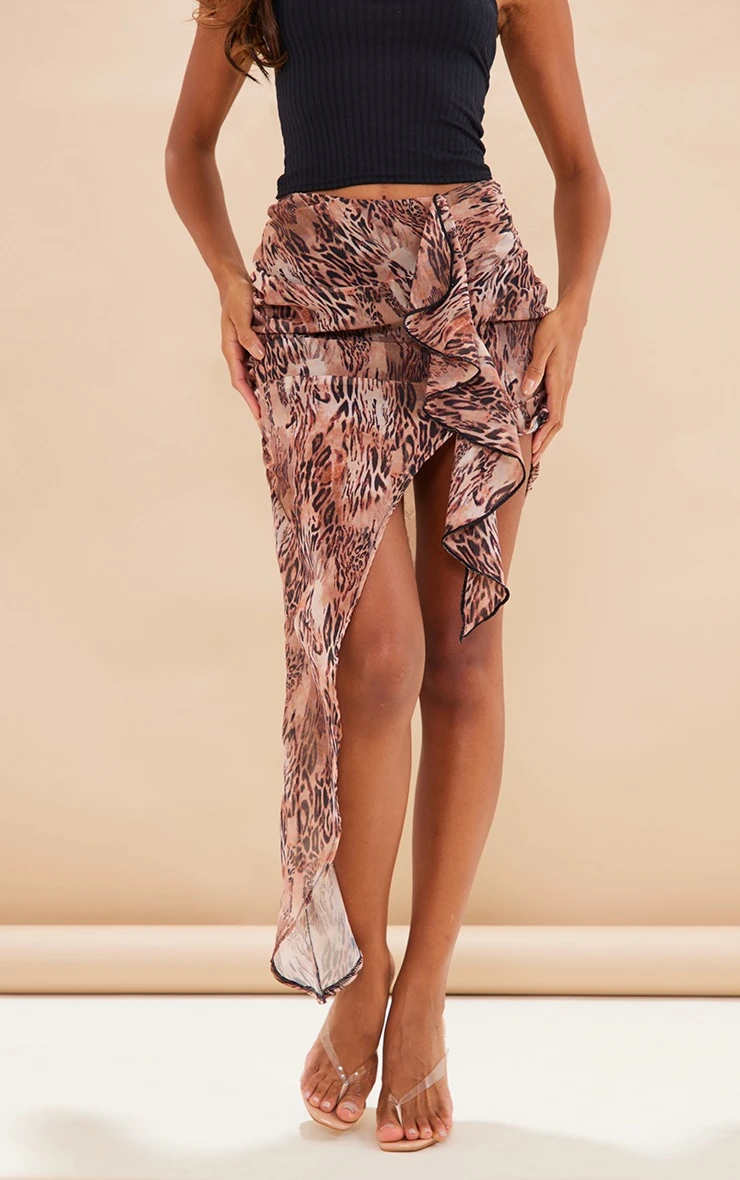 Add a little attitude to your new season wardrobe with this brown floral print uneven hem ruffle skirt. Get ready to take your weekend look to a whole new level. This skirt is made with a brown hue floral print material with an uneven hem design and ruffle detailing, how could you not be in love? Pair with a basic top, clear slip-on heels and gold accessories for a look that is sure to have heads turning for all the right reasons.