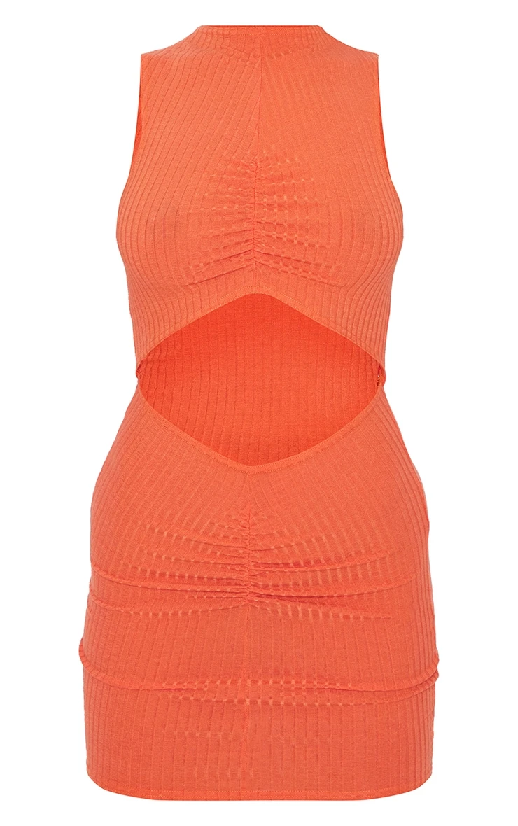 Turn up the heat on your weekend wardrobe with this statement dress doll. Featuring a burnt orange ribbed material with a cut out design and ruched detailing. Style with slip-on heels and a mini bag for a chic, Insta-ready fit.