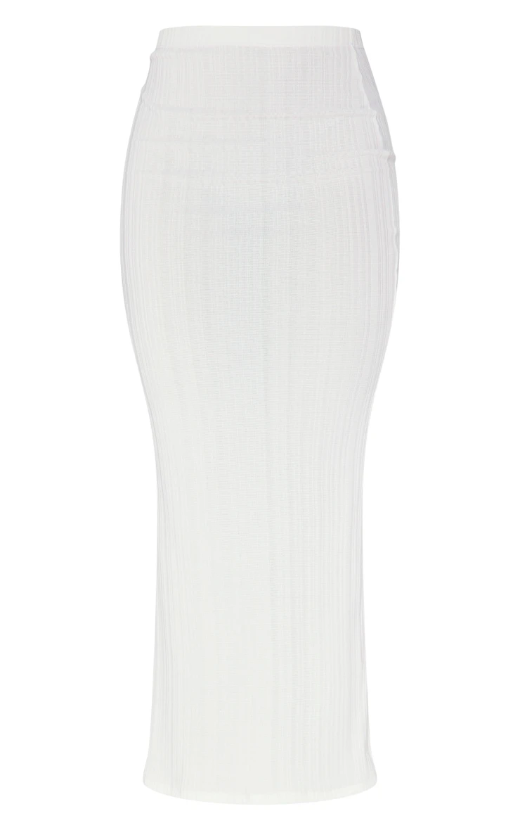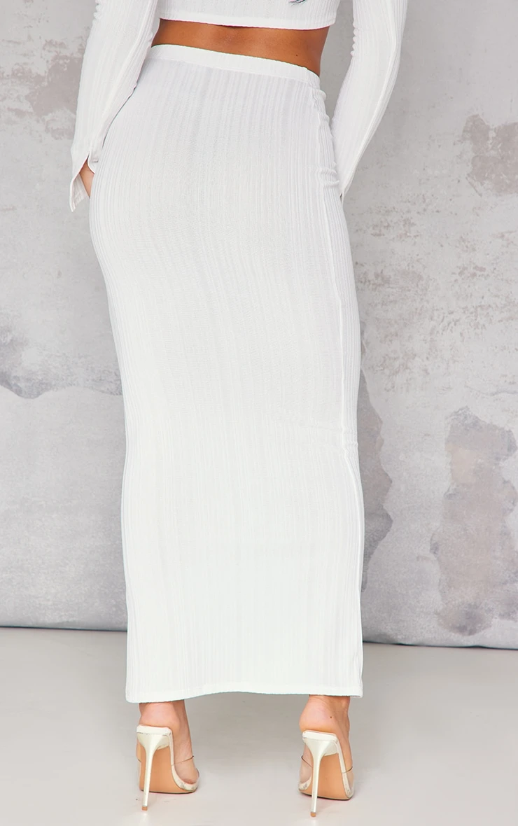 This midi skirt is sure to take your look to the next level this weekend. Featuring a cream textured rib material with a low-rise waist and midi length. Pair it with the matching crop top and heels to complete the look ready for any occasion.