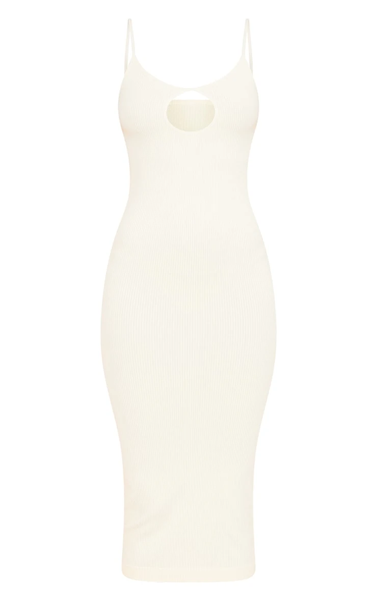 Keep your look simple yet chic with this midaxi dress. Featuring an ecru hue material with a cut-out detail and a figure-skimming fit. Team this with slides and a shoulder bag to complete the look.
