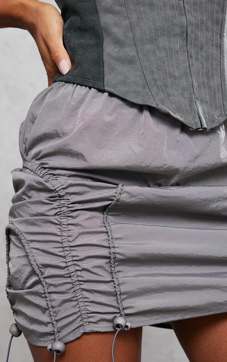 You are sure to have all eyes on your with this grey parachute toggle hem mini skirt. It’s made using a grey hue material with a parchute design, a toggle hem fastening and a flattering fit that will suit your shape, what more could you ask for? It’s everything you need and more in your off-duty wardrobe. Wear with a cropped tee, fresh trainer and gold hue accessories for the ultimate fashion fix that will get everyone talking.