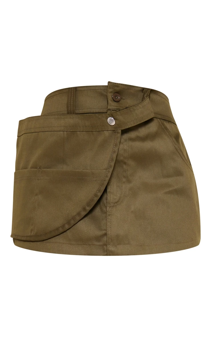 Let your streetwear style shine through with this unreal cargo skirt. Featuring a khaki woven material with a wrap detail, a mini micro length and a flattering fit, we are obsessed. Team with knee-high boots, statement sunnies and an oversized jacket.