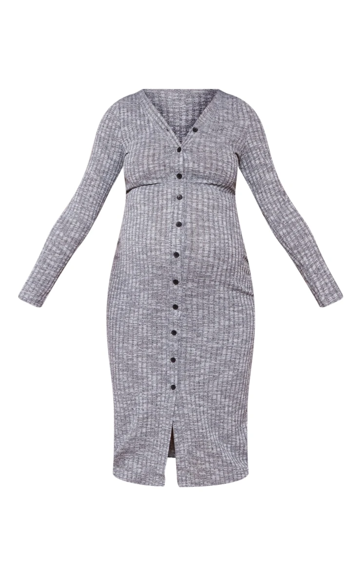 This dress is everything you need for your A/W wardrobe. Featuring a grey marl soft rib material with long sleeves, button detailing and a midi length, what’s not to love? Pair with a black clutch bag, knee-high heel boots and simple accessories for a look we can’t stop crushing on.