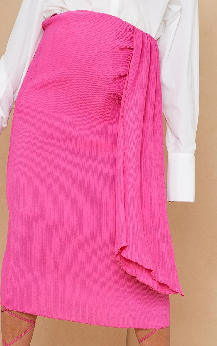 Give your look a fiercely feminine refresh with this midi skirt doll. Featuring a pink material with a plisse design and a flattering fit, we are in love. Wear with a white shirt and pink heels to take the look the extra mile.