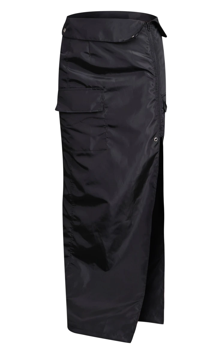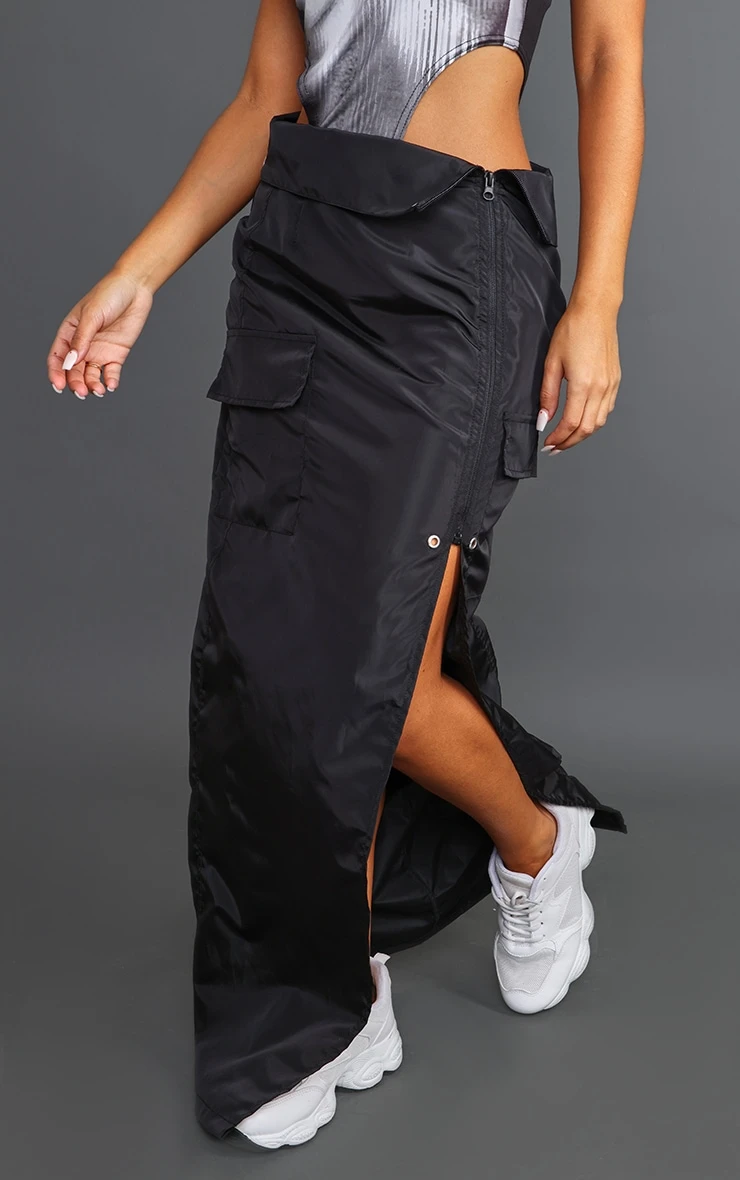 Add some edge to your look of the day with this midaxi skirt. Featuring a black material with a fold over waistband and a midaxi length in a cargo style, how could you say no? Simply add a statement bodysuit, box-fresh kicks and sunnies for an insta-worthy combo.