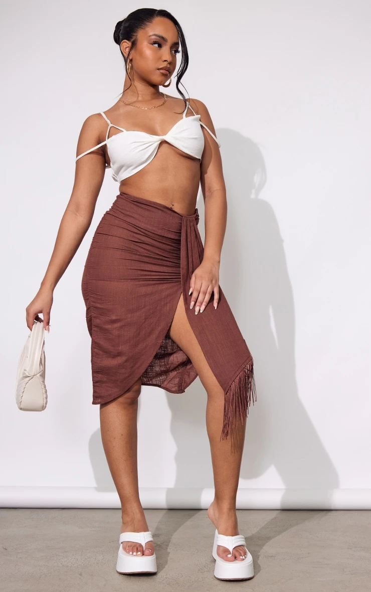 Say hello to your new season staple with this petite chocolate linen look tassel skirt. Brought to you in a chocolate linen look material with tassel detailing, what more could you want? This petite women’s skirt is here to banish any of your what to wear dilemmas doll. Style with a white bralet, sandals and accessories for a look that have you being the topic of everyone’s conversation..