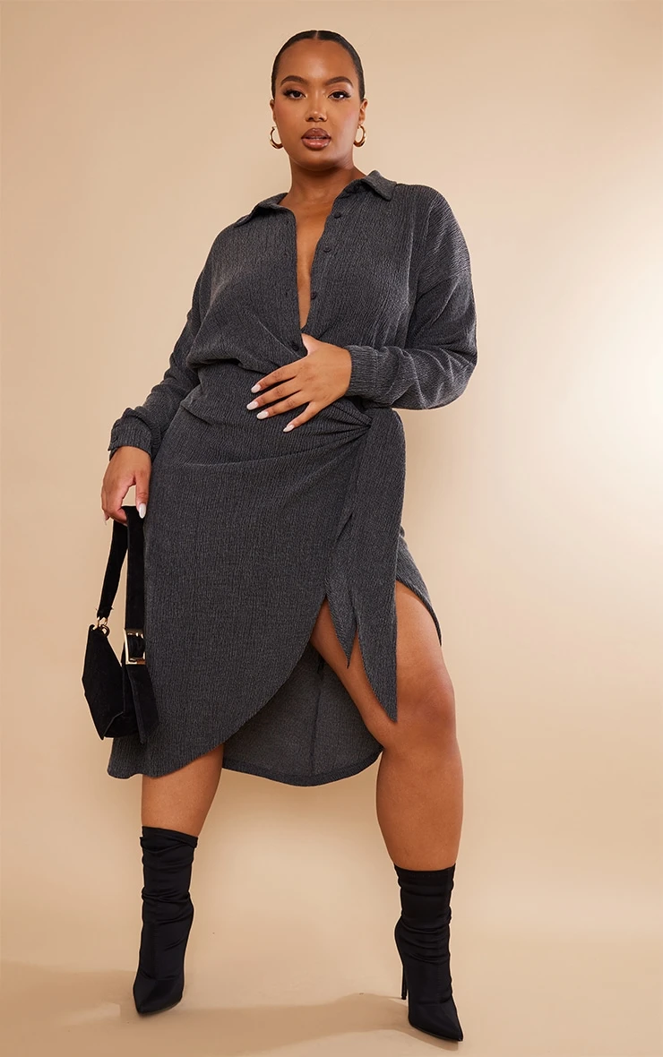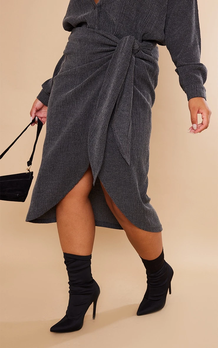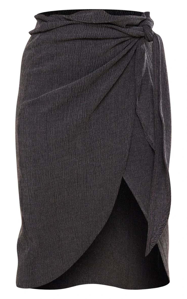 Stay on your styling A game this season with this staple skirt. Featuring a black textured material with a wrap design and a figure-flattering fit, we are obsessed. Team with the matching shirt, heeled boots and a mini bag to level up the vibes.