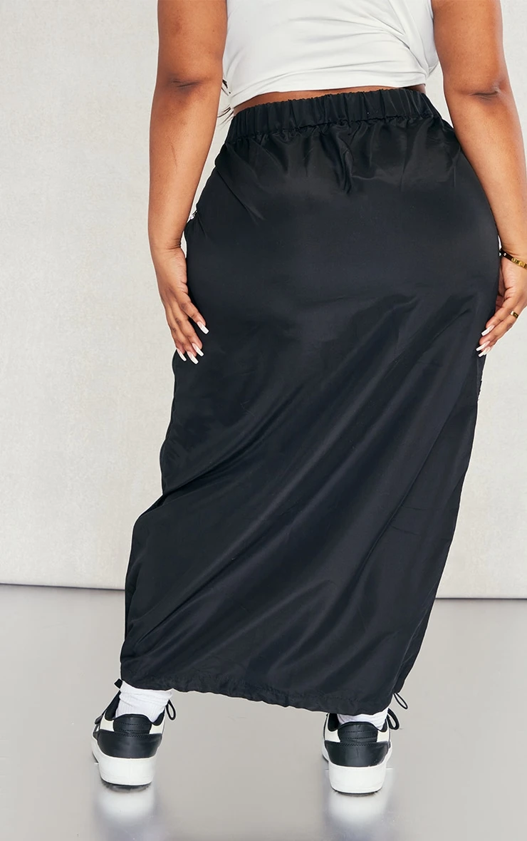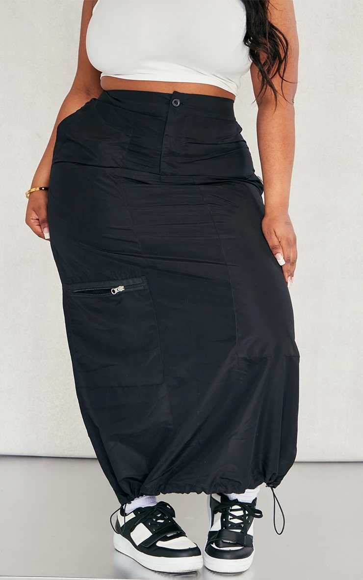 Switch up your off-duty vibe with this plus black zip-up detail midi skirt. It’s black hue material is seriously fresh whilst its zip up fastening and toggle details add an extra edge to your look. This plus midi skirt is sure to impress no matter what your plans are with your off-duty day. Simply pair with a basic crop top, box-fresh sneakers, and a tote bag for a fool-proof finish.