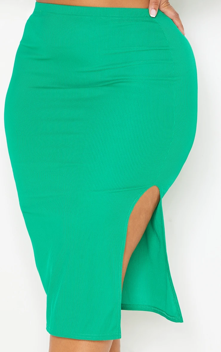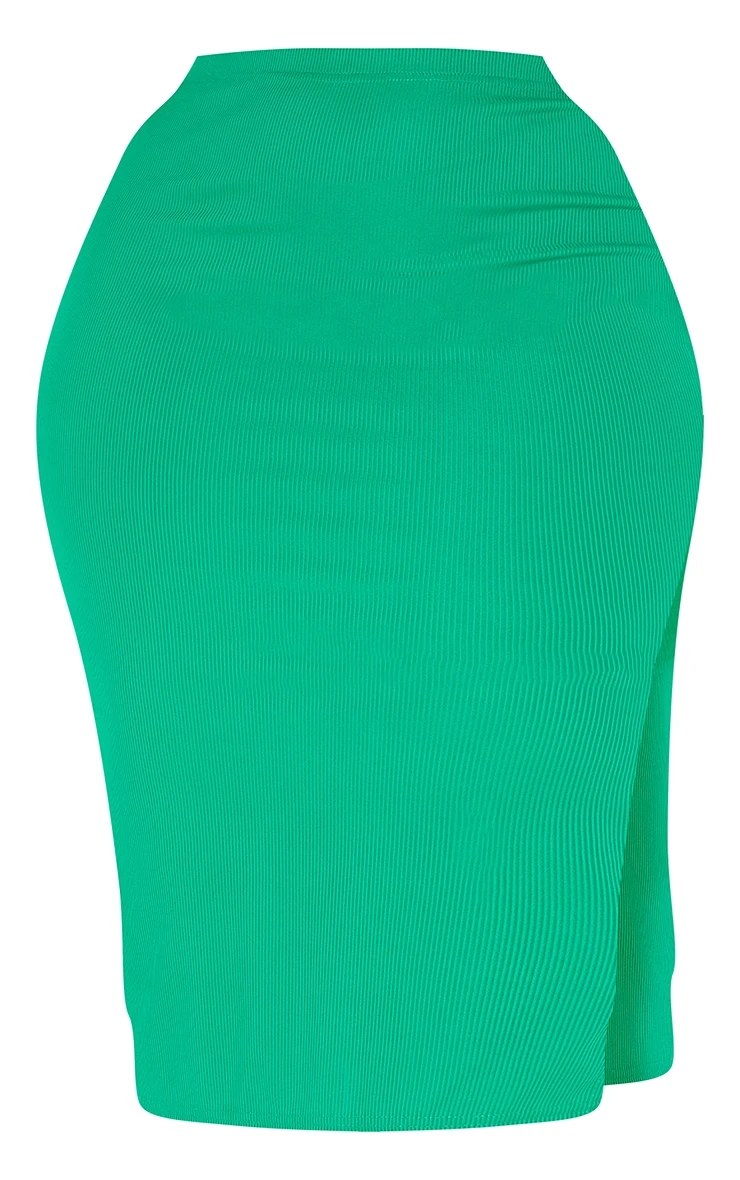 Upgrade your weekend look with this bold midi skirt. Featuring a bright green ribbed material with split detail and a midi length. Style with a matching top, strappy heels and a mini bag for a look we are loving.