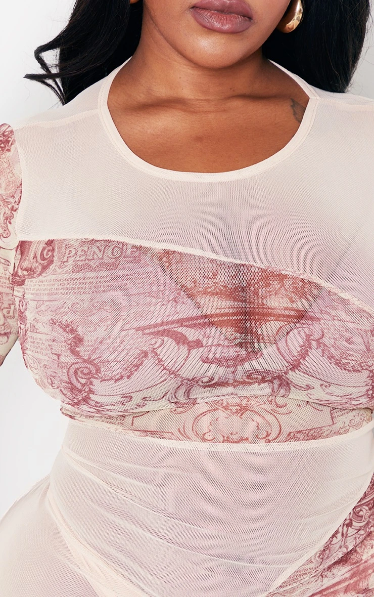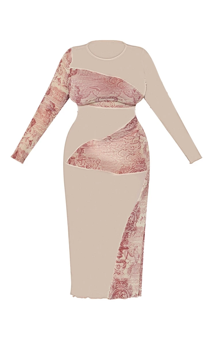 Your weekend outfit is finally sorted with this plus brown statue printed contrast mesh midi dress doll. Its brown statue-printed mesh material is paired with contrast mesh panels which shows off your unreal figure and expresses your daring side. This midi dress is bound to steal all the stares no matter what your plans are and we know you won’t be able to resist. Pair with clear heels and a shoulder bag for a weekend-worthy ‘fit ready for a night with the dolls.