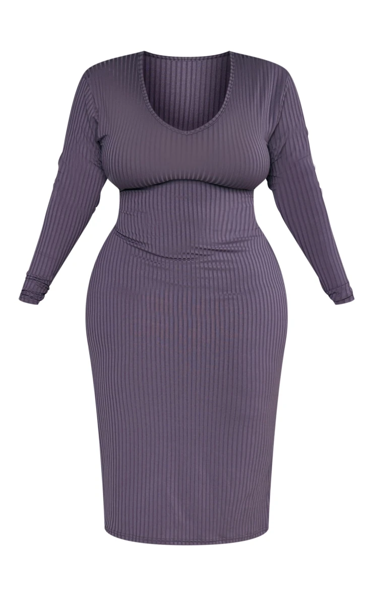 Get ready to have all eyes on you this season with this staple midi dress. Featuring a charcoal rib material with a scoop neck, long sleeves and a flattering fit, we are in love. Wear with heeled boots, accessories and a shoulder bag for a head-turning combo.