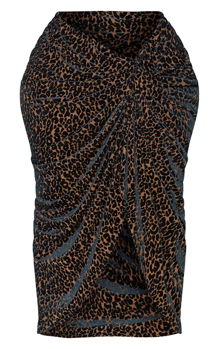 Give your weekend wardrobe a fierce update with this skirt. Featuring a chocolate leopard print velvet material with a ruched side design and a midaxi length. Style with the matching top, clear heels and a shoulder bag for a look that is sure to get you noticed.
