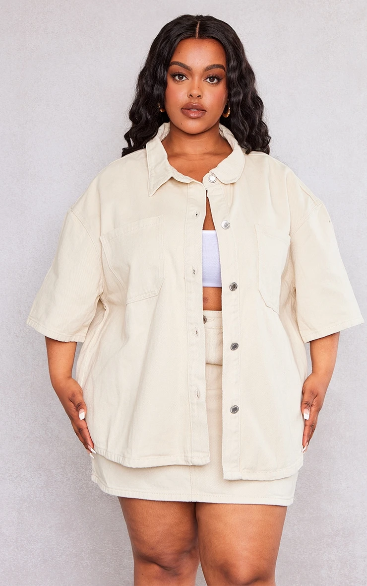 Get ready for the new season in style with this plus cream denim mini skirt. Its cream denim material is sure to nail some major trends and its bodycon fit hugs your curves in all the right places. This plus mini skirt will be your new go-to for any occasion whether its a wholesome day with the dolls or weekend plans with someone special. Style this plus mini skirt with the matching shirt, a bralet and clear heels for a weekend-worthy finish.