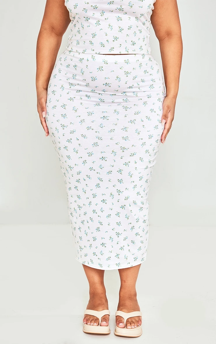Get ready for the summer season with this plus cream ditsy floral midi skirt. Made from a cream ditsy floral material with a high waist, and a split hem, you simply can’t resist. This plus midi skirt can be styled for a wholesome off-duty day or dressed up for any weekend plans with the dolls, it is the styling staple that every doll needs. Pair with the matching cami top, flat sandals and a mini bag ready for a brunch date with someone special.