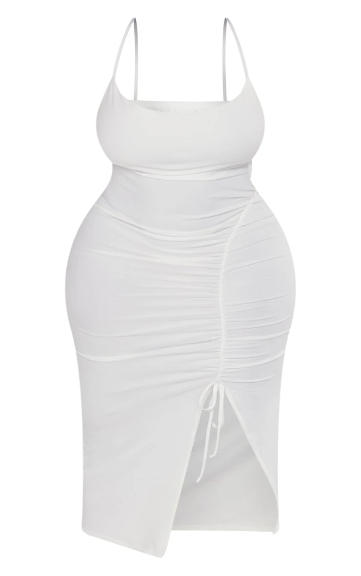 Glam up your weekend look with this plus cream soft touch jersey cowl neck ruched midi dress. Whether you have a romantic date night on the horizon or a special occasion in the diary this plus midi dress is our fave choice. Made from a cream soft touch jersey material with a cowl neckline and ruched detailing, what’s not to love? Complete your dreamy look with strappy heels and staple accessories.