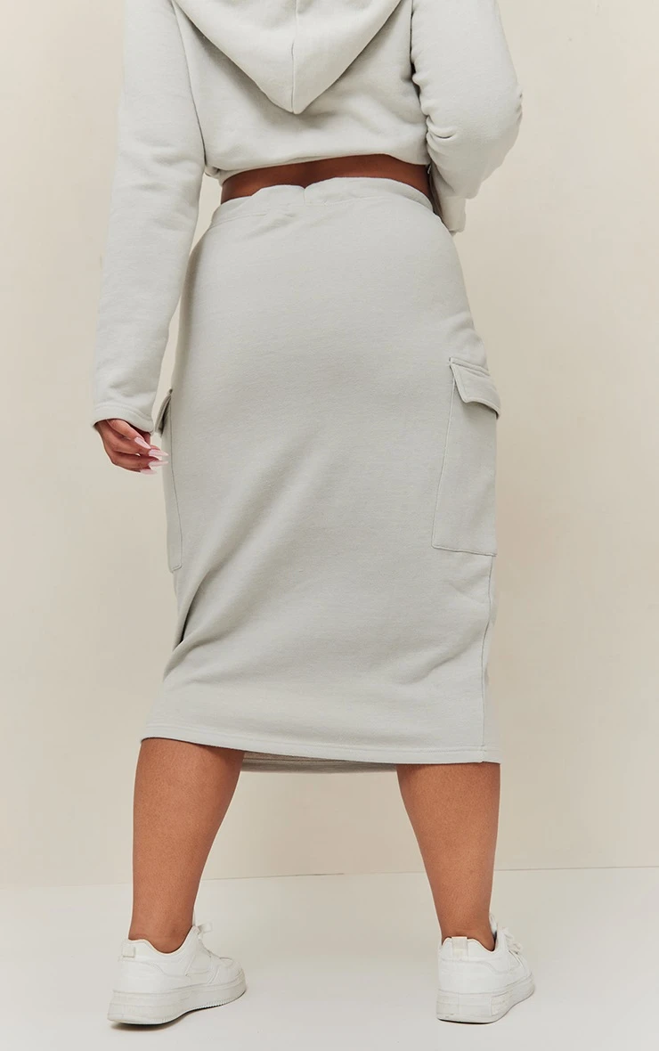 Switch up your style game with this must-have plus grey sweat cargo skirt, when you need a solution to your what to wear dilemmas, this skirt is sure to be at the top of your wish list. It is made with a grey sweat material with a cargo style and a relaxed fit, how could you say no? Wear with the matching top, your fave sneakers and simple accessories for the ultimate fresh finish, it’s a definite yes from us.