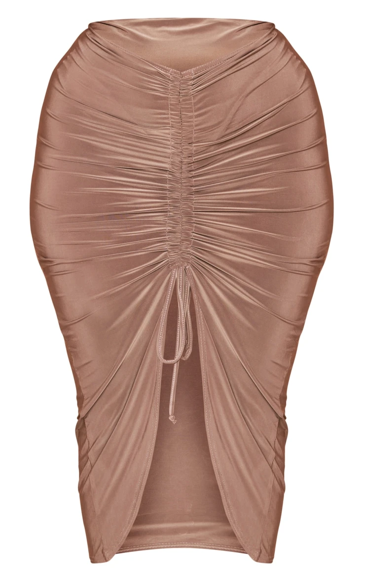 Prepare to show off your shape with this skirt doll. Featuring a mocha slinky material with a ruched front design and a midi length, what’s not to love? Wear with the matching skirt and your fave heels to really amp up the look.