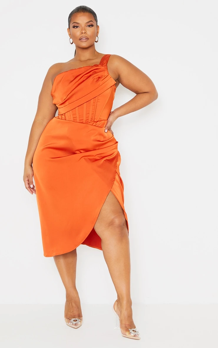 This midi dress is at the top of our new-season wish list. Featuring an orange satin material with a side split design and drape detail, we are in love. Team with barely-there heels for a seriously chic finish.