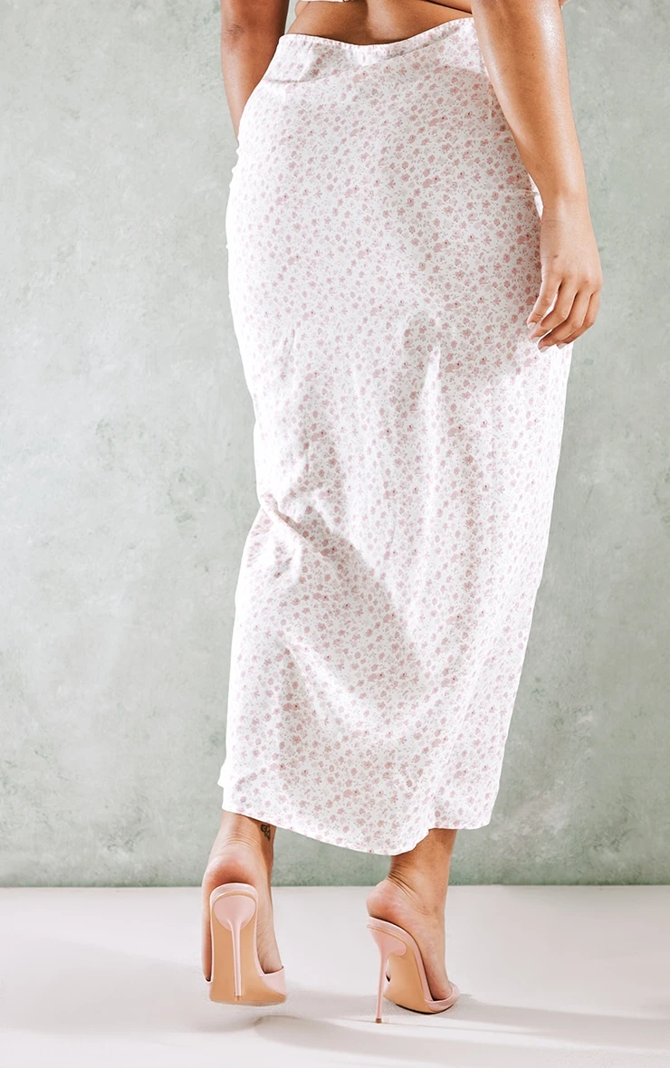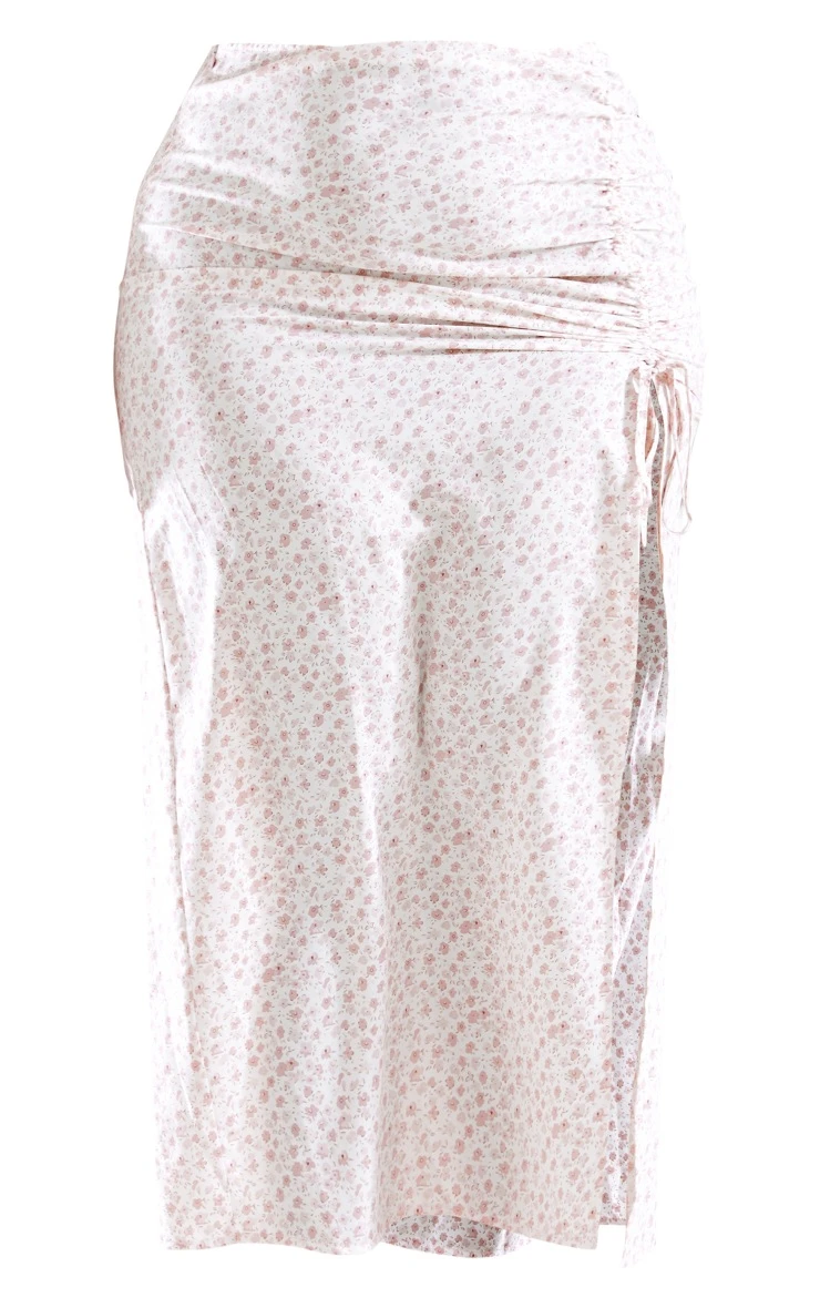 We are obsessing over this plus pink ditsy floral ruched side split midi skirt for your new season wardrobe. With dreamy skirt has a pink hue material with a ditsy floral design, you will be center of attention at your next upcoming occasion. With a side split detail, this midi skirt has a flattering fit that is a must-have this season. Style with the matching top and a pair of mule heels to take this effortlessly glam look to new heights.