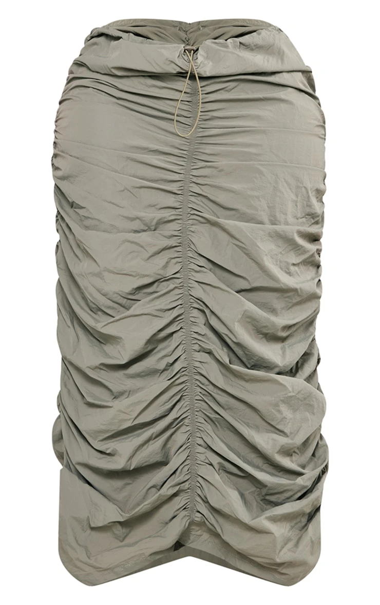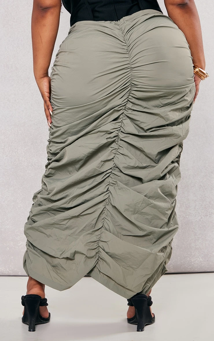 Be ready to earn all the likes in this plus sage khaki ruched parachute midi skirt. This staple piece is brought to you in a sage khaki material with ruched detailing, a midi length and a parachute style, what more could you want? From start to finish this midi skirt will take any look from 0-100. Pair with a black corset, high heels and mini bag for a statement finish.