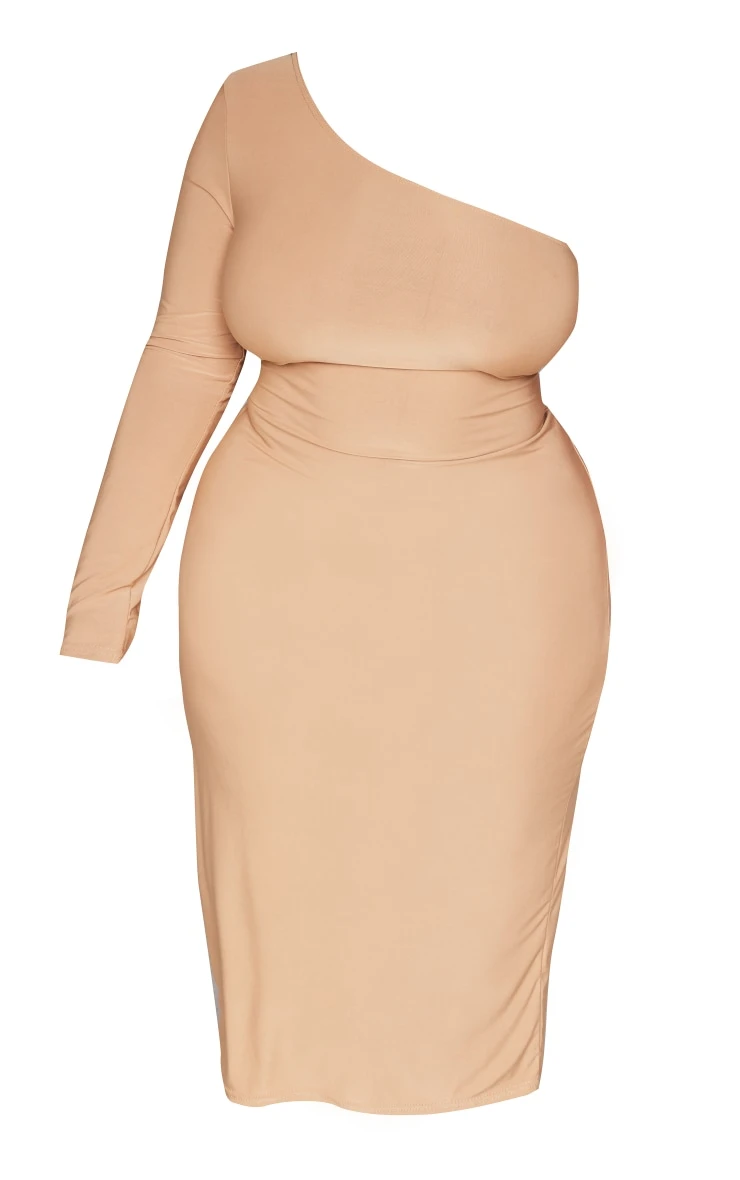 Upgrade your weekend look and nail some major trends with this plus stone slinky one-shoulder midi dress. Whether you have a get-together with the dolls or a night planned with your special someone, this plus midi dress is the only choice. With a stone-slinky material, a one-shoulder design, and a figure-hugging fit, what more could you ask for? Give your look the ultimate finish touch with a statement clutch bag, clear heels and glam accessories.