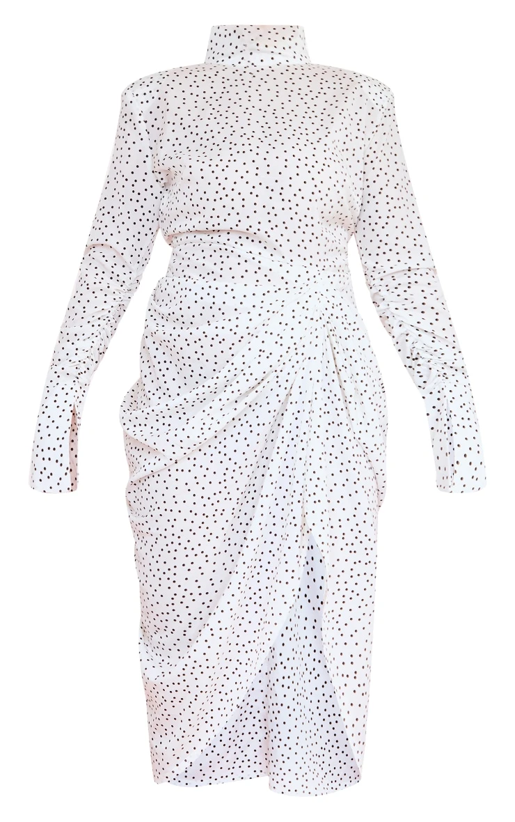 Get occasion ready with this unreal plus white polka dot high neck draped midi dress. Brought to you in a white hue material with a polka dot print, a high neckline, long sleeves and a flattering draped midi fit, how can you not fall in love? Style this plus midi dress with clear strap heels and some glam accessories for a weekend-worthy look they won’t be able to keep their eyes off.