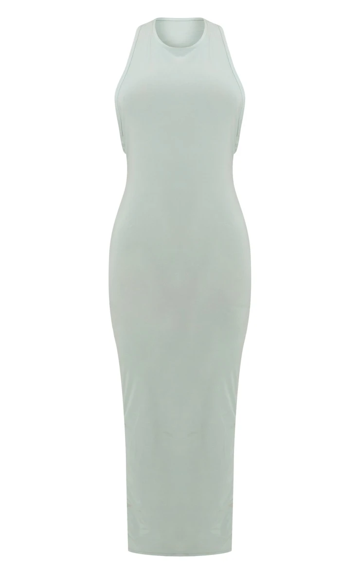 This sage slinky extreme racer back midaxi dress is a must have for all of those upcoming events this season. Brought to you in a sage slinky material for a flattering fit, and an extreme racer back design to show off your shape. With its midaxi length, what more could you want? Team with some clear heels and your fave accessories to make them stop and stare wherever you go.