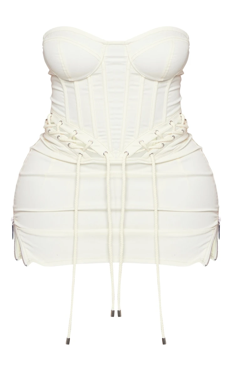 Get ready for the weekend with this shape cream denim look rope detail lace-up corset bodycon dress. Made from a cream denim material with rope detail lace-up design and a bandeau neckline, how could you resist? Whether you have plans with the dolls or a date night with someone special, then this shape bodycon dress is perfect for stealing all the stares. Team this shape bodycon dress with clear heel and a mini bag for a statement look that is sure to impress.