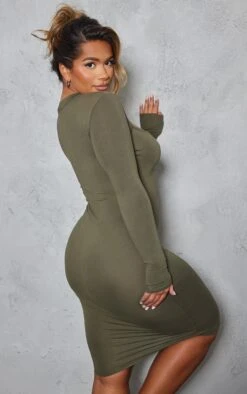 Shape Multi Marble Print Ruched Front Long Sleeve Bodycon Dress