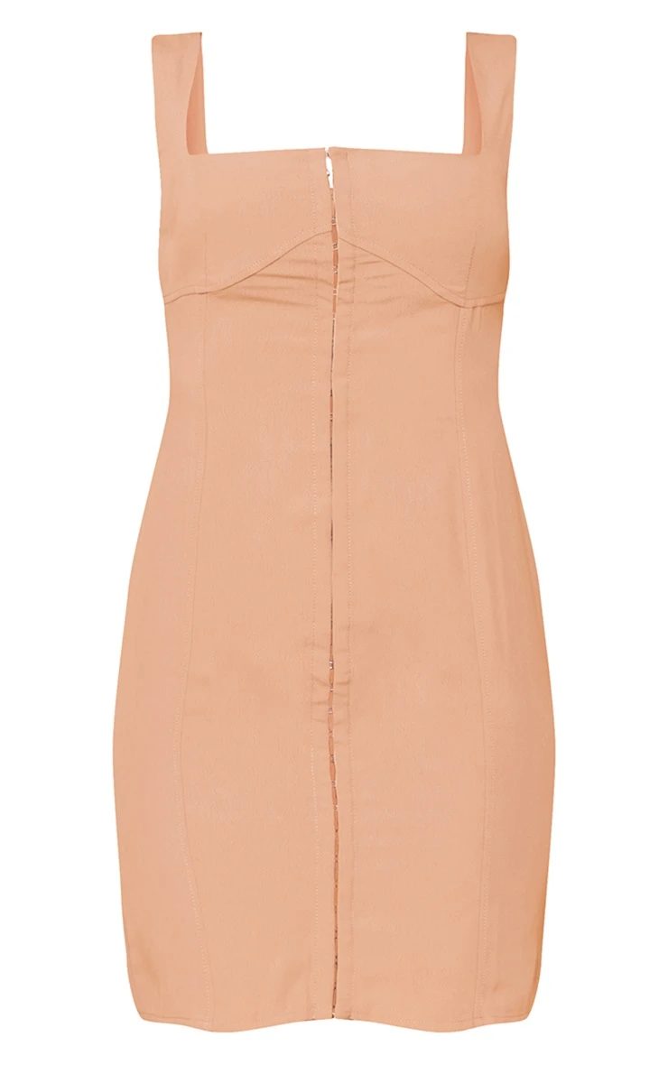 Your weekend fit is finally sorted with this stone chiffon hook and eye binding detail bodycon dress, it is everything we are loving for your next night with the dolls and beyond. This dress is made using a stone hue chiffon material with a hook and eye design and a figure-worshipping fit that is sure to have you at the centre of attention. Style this bodycon dress with tie-up heels and your fave accessories for a look everyone will remember.
