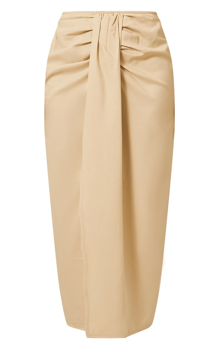 Add some drama to your vacay wardrobe with this dreamy skirt. Featuring a stone woven material with panel wrap detailing and a split hem design, team this with the matching top and sandals for a beach-worthy vibe.