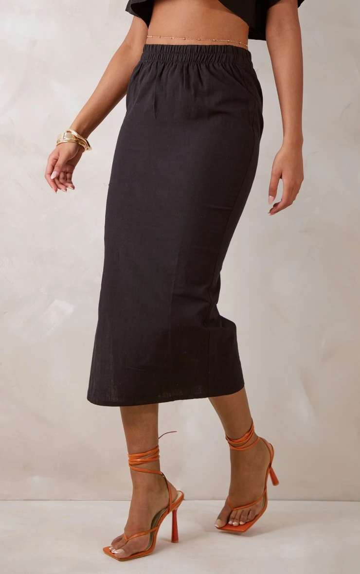 Look all kinds of chic in this tall black linen look midi skirt. Made from a black hue linen look material with a figure-worshipping fit and a midi length, we just can’t get enough. Style this tall skirt with the matching top, bold hue heels and a mini bag for a look that is sure to have all eyes on you. Perfect for a night out with the dolls and beyond.