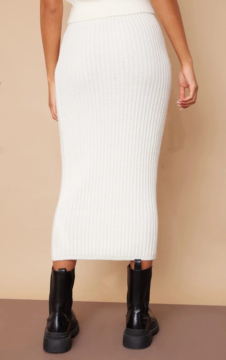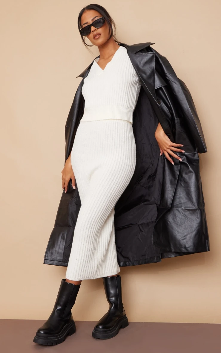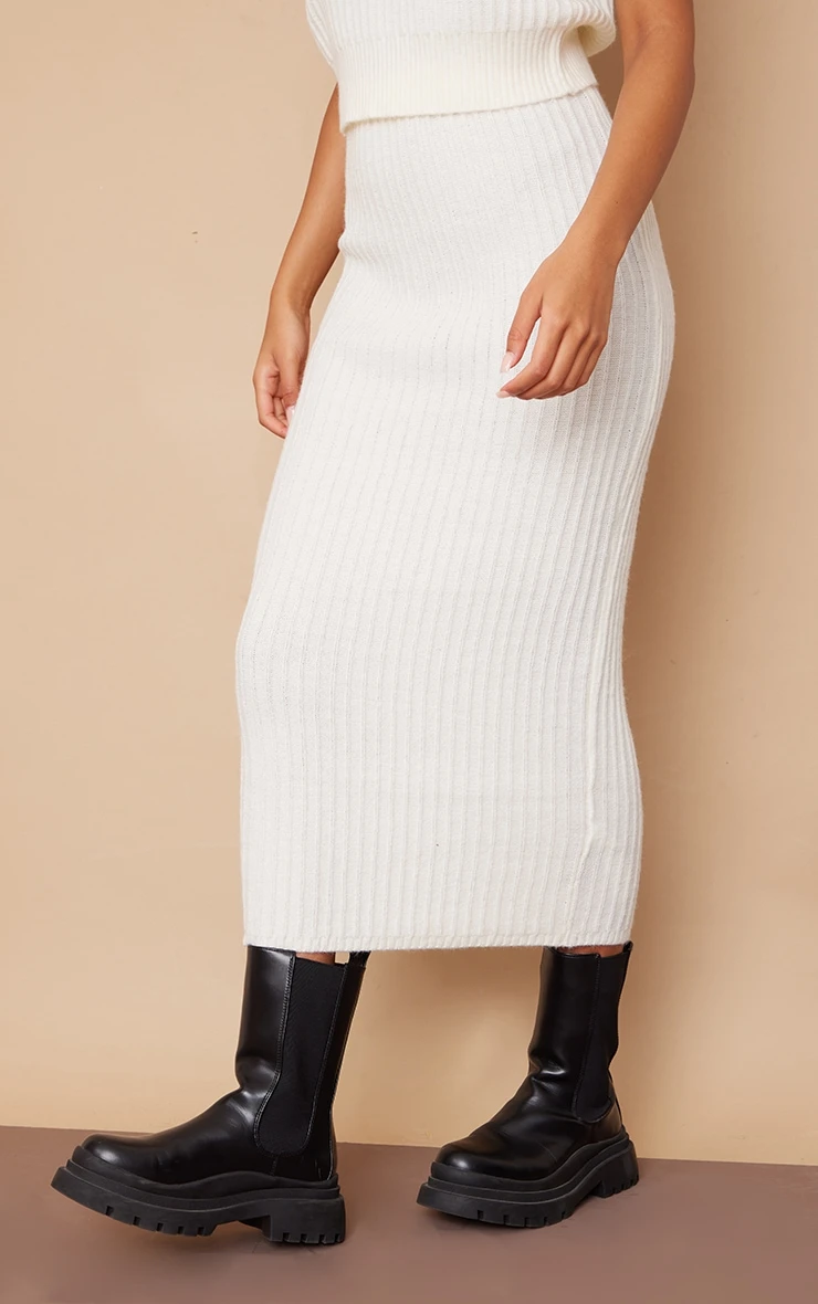 This season a skirt is essential and we are loving this style, Featuring a cream knit material with a high waist and a midi length, we are obsessed. Team with some chunky black boots and a faux leather jacket to take your look to the next level.