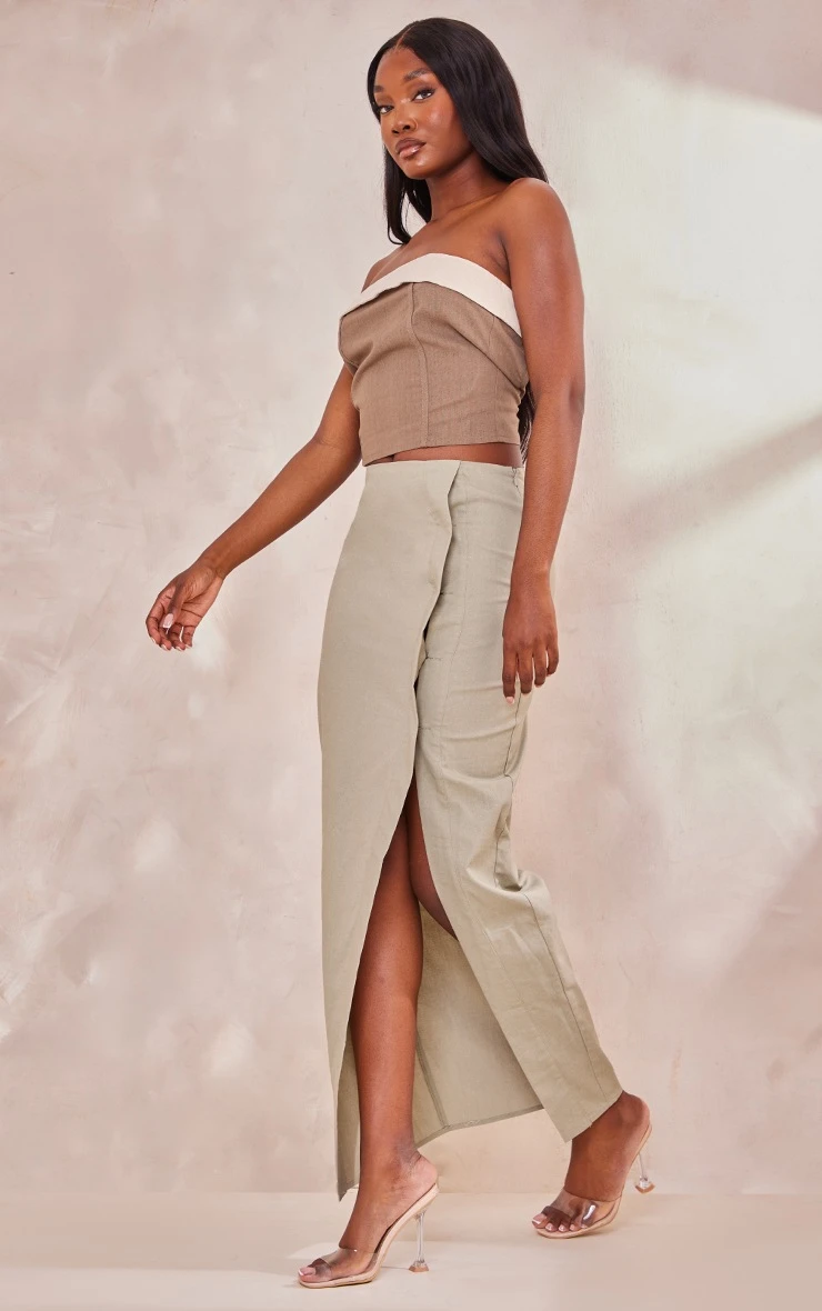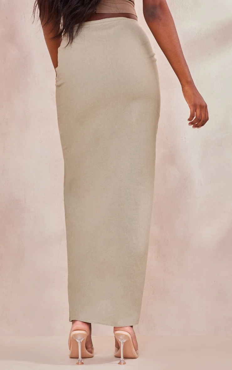 Get ready to nail major trends all season long with this tall khaki linen look skirt with split. Brought to you in a khaki hue linen look material with a midaxi length and split leg detailing, what more could you ask for? This seriously chic, linen look skirt is perfect for dressing up or down to suit your weekend plans doll. Style this tall skirt with a bandeau top, clear strap heels and simple accessories for an effortless look that won’t go unnoticed.