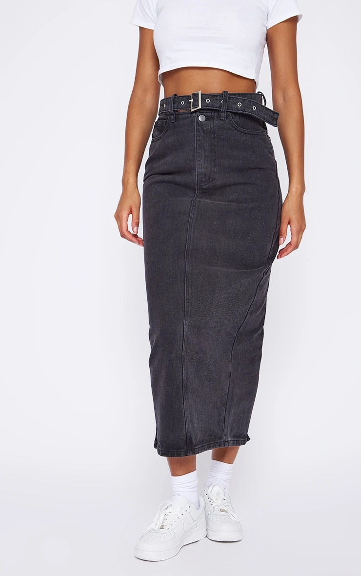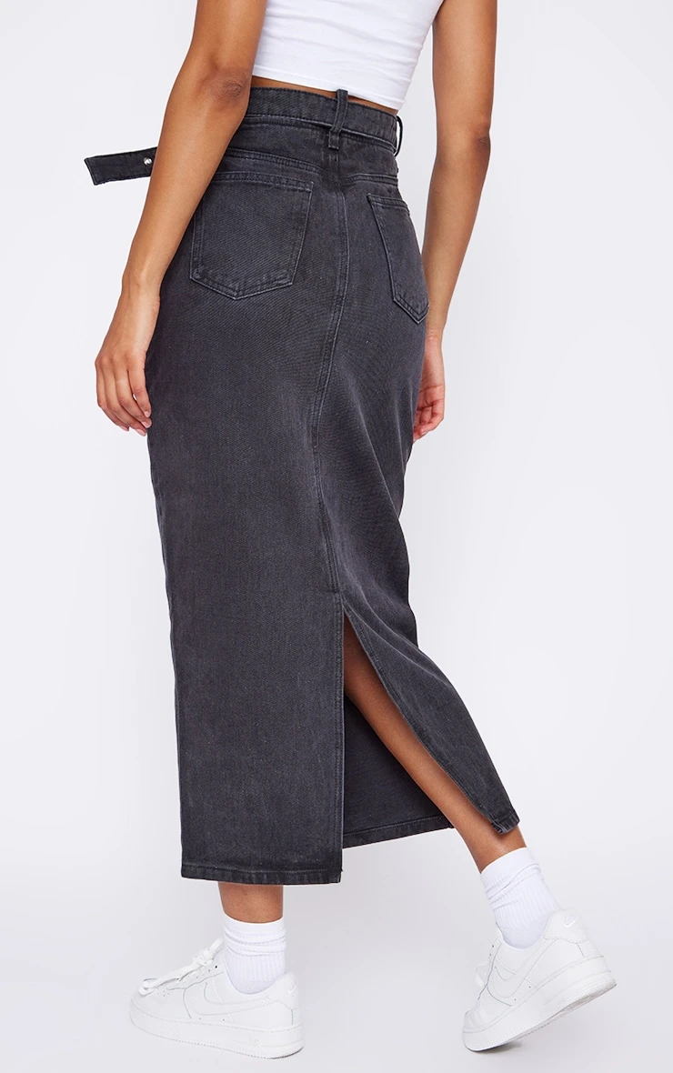Get ready to nail major trends this season with this washed black cut out buckle waist denim midi skirt, it is sure to be your new go to whether you’ve got weekend plans with the dolls or want to amp up your everyday look. This skirt includes a washed black denim material with a cut out design and a buckle waist detail, it’s a definite yes from us. Pair this women’s midi skirt with your fave top and simple accessories for a chic, blogger-worthy vibe.